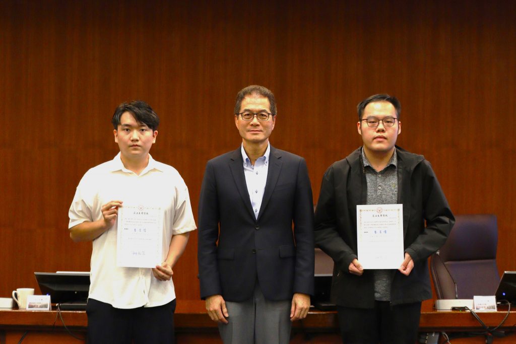114學年度第1學期獲獎同學共計3位,會計系林聖諺、航太系余陳彥,以上2位同學獲頒新台幣3萬元獎學金。另水環系劉奕欣上課故無法出席,將另予發放。